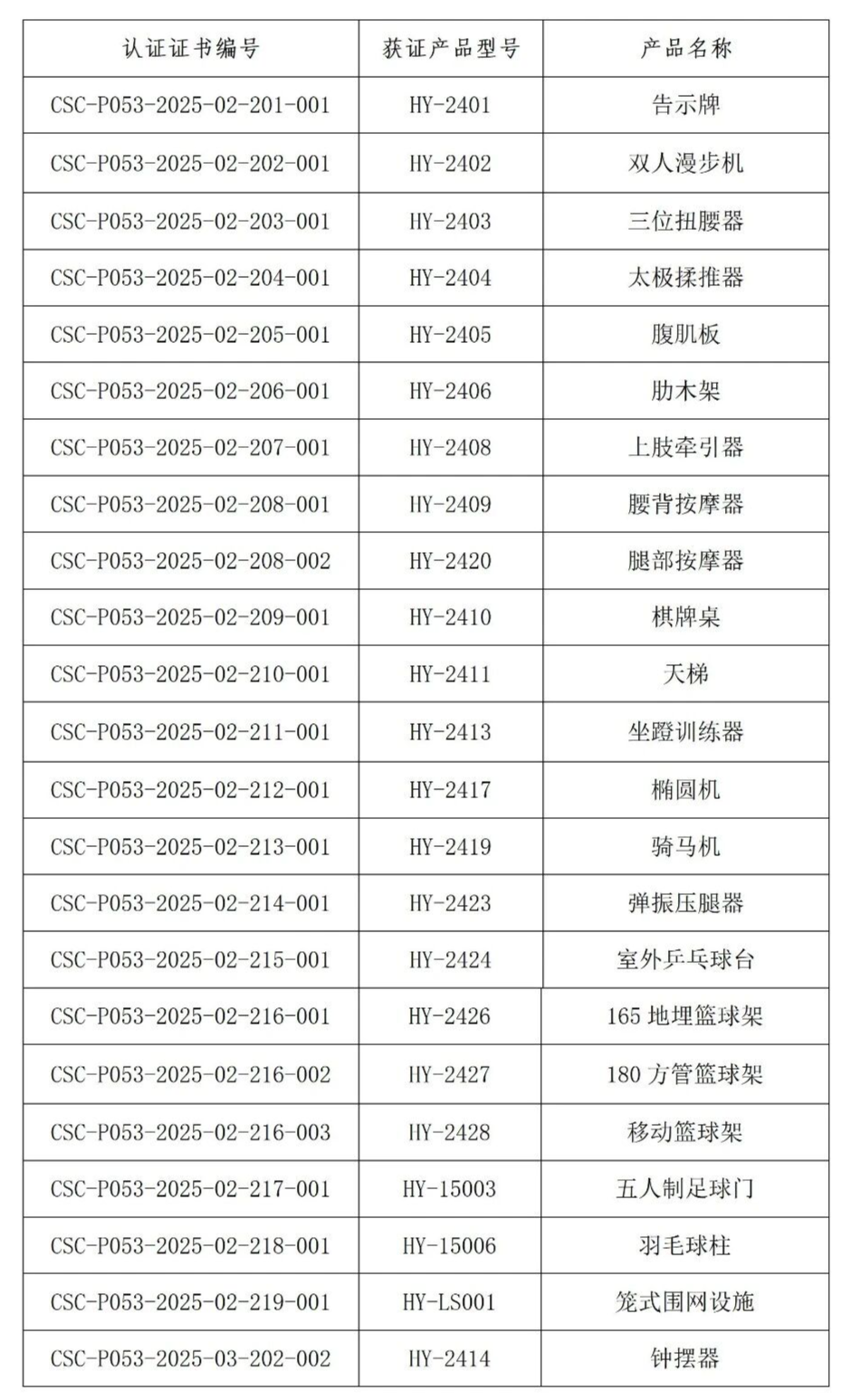 关于泰州市鸿运体育器材有限公司产品认证证书的公告 | 中体联认证