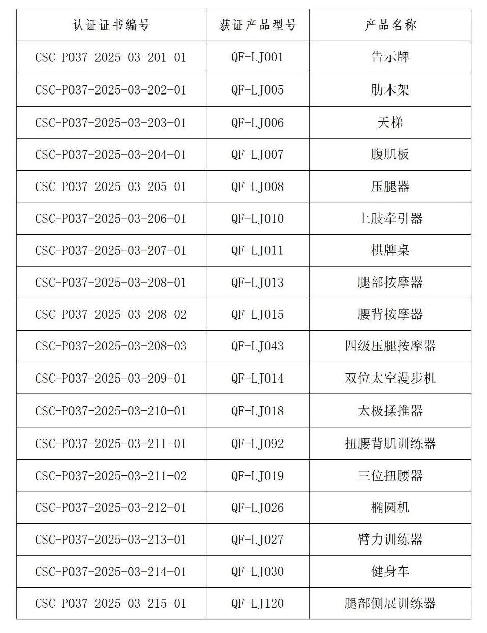 河北启帆教学设备制造有限公司获得由中体联(北京)认证服务有限公司颁发的产品认证证书,证书明细如下:(共18张),特此公告。