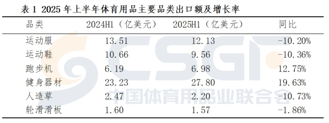 2025年上半年,体育用品主要品类出口涨跌互现。
