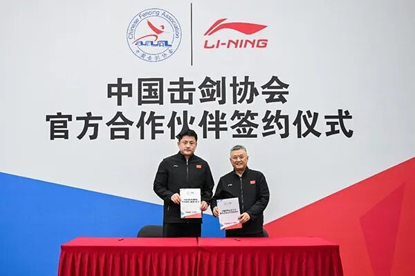 中国击剑协会与李宁品牌在北京李宁中心共同举行签约仪式,宣布李宁品牌成为中国击剑协会及中国国家击剑队官方赞助商。自2025年起,李宁品牌作为中国国家击剑队唯一专业击剑、运动及运动休闲类服装鞋帽及相关配件配饰装备的赞助商,全面支持国家队训练与参赛需求。中国击剑协会主席王海滨,国家体育总局自行车击剑运动管理中心副主任、中国击剑协会副主席兼秘书长王峻燕,李宁集团董事长特别助理张向都以及中国国家击剑队运动员、教练员、协会工作人员等共同出席签约仪式。