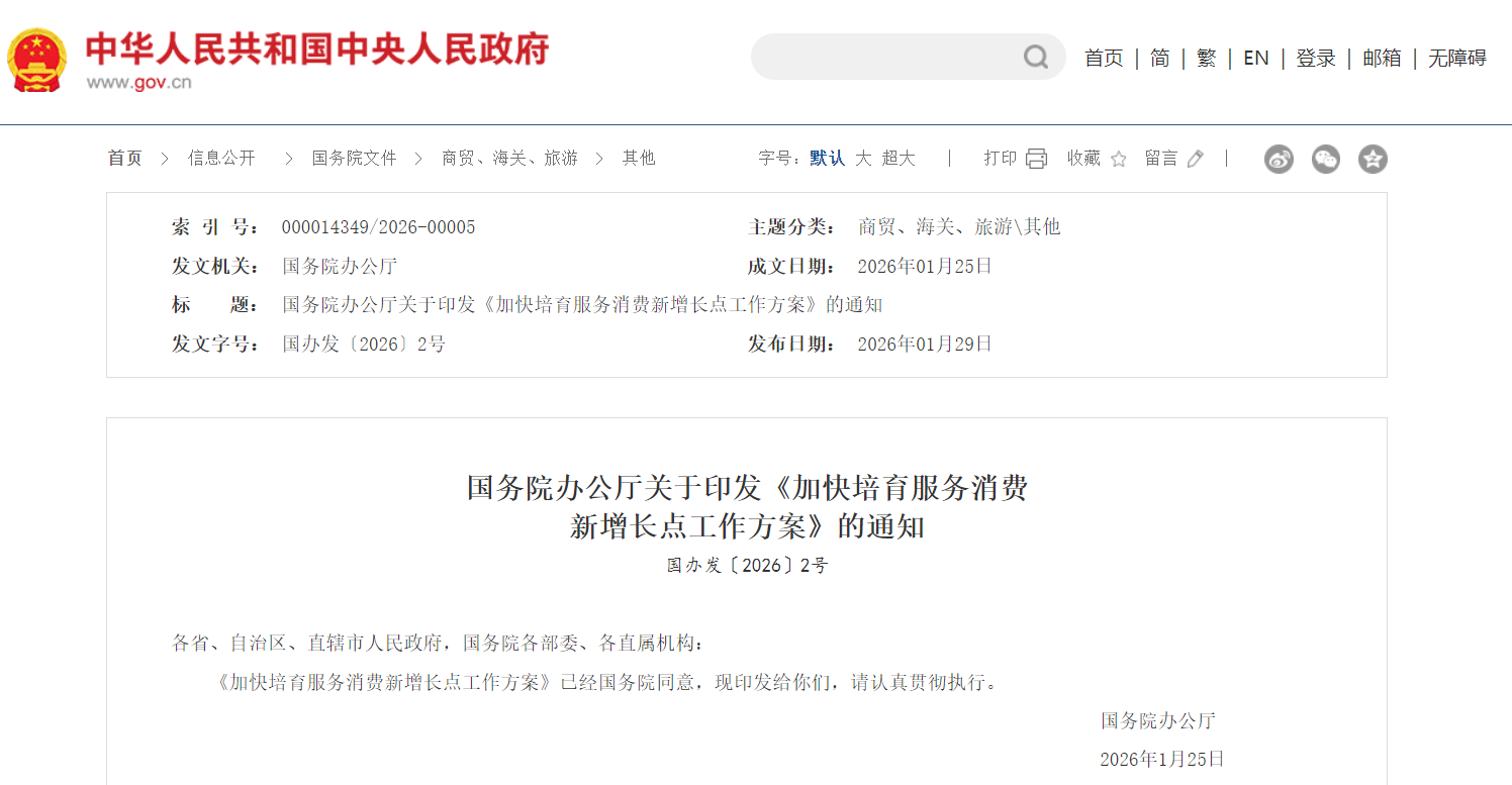 国办印发《加快培育服务消费新增长点工作方案》